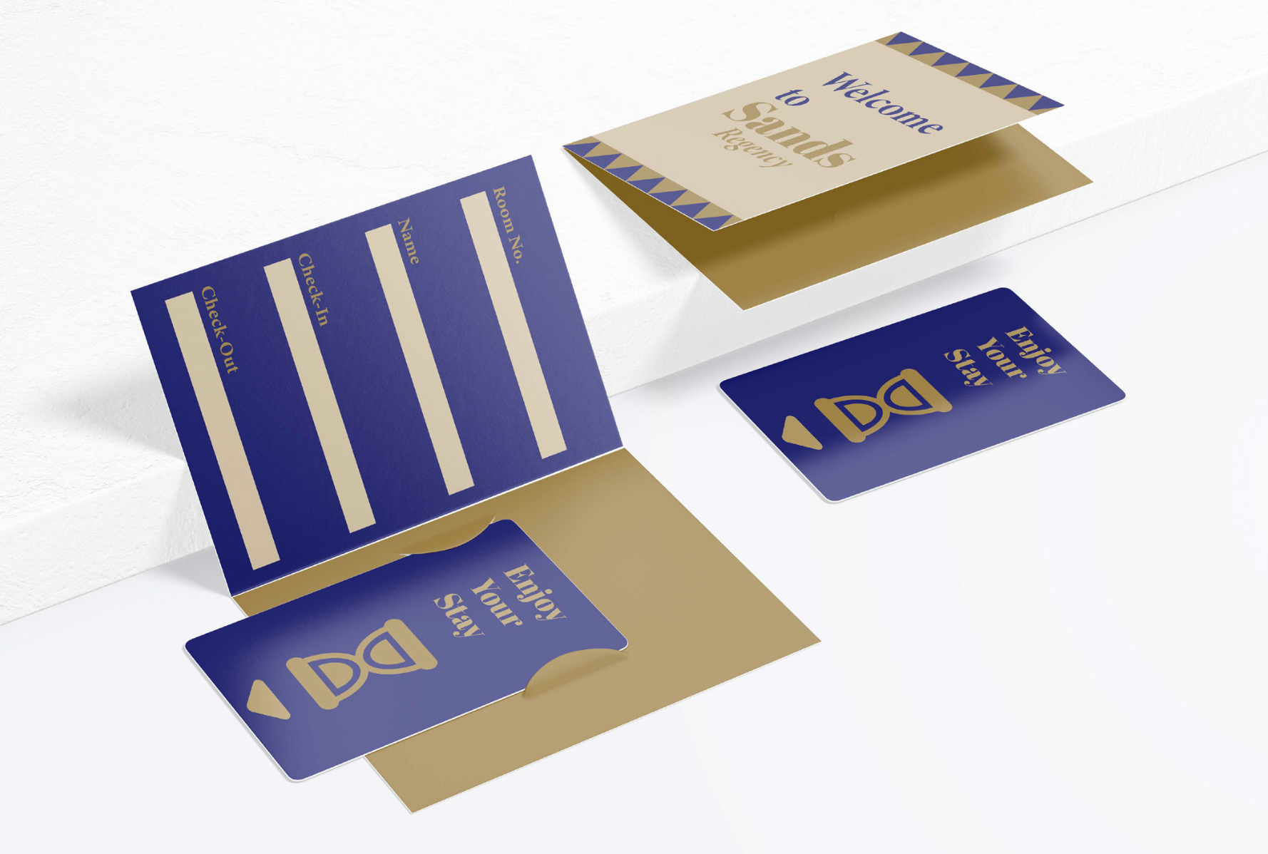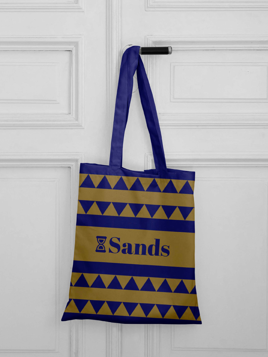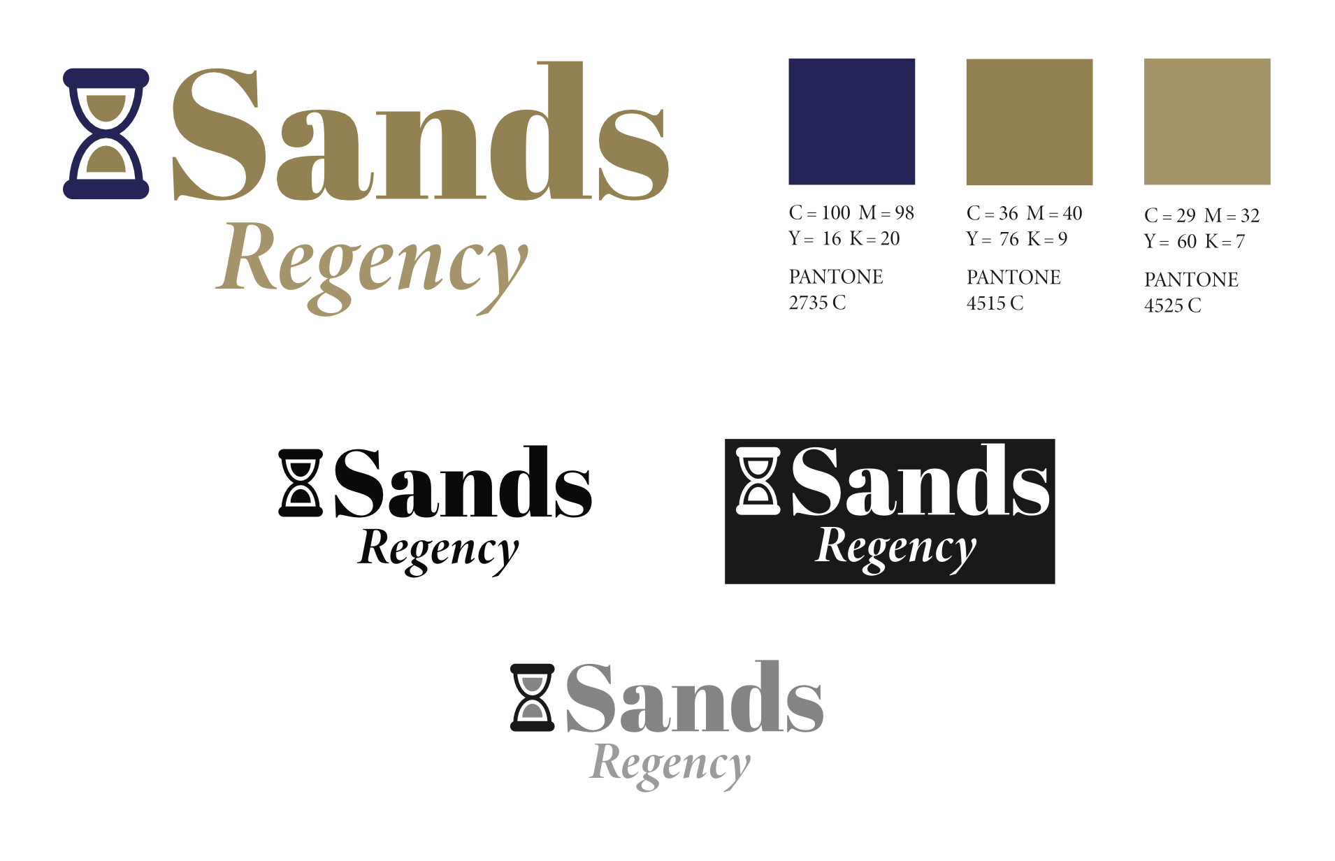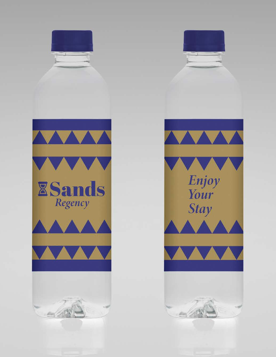 This project was a rebrand of the Sands Regency, a hotel and casino in Reno, Nevada. The brand's new visual identity is more modern and utilizes a desert motif. This project included logo design, a hotel keycard, water bottles, and tote bags.