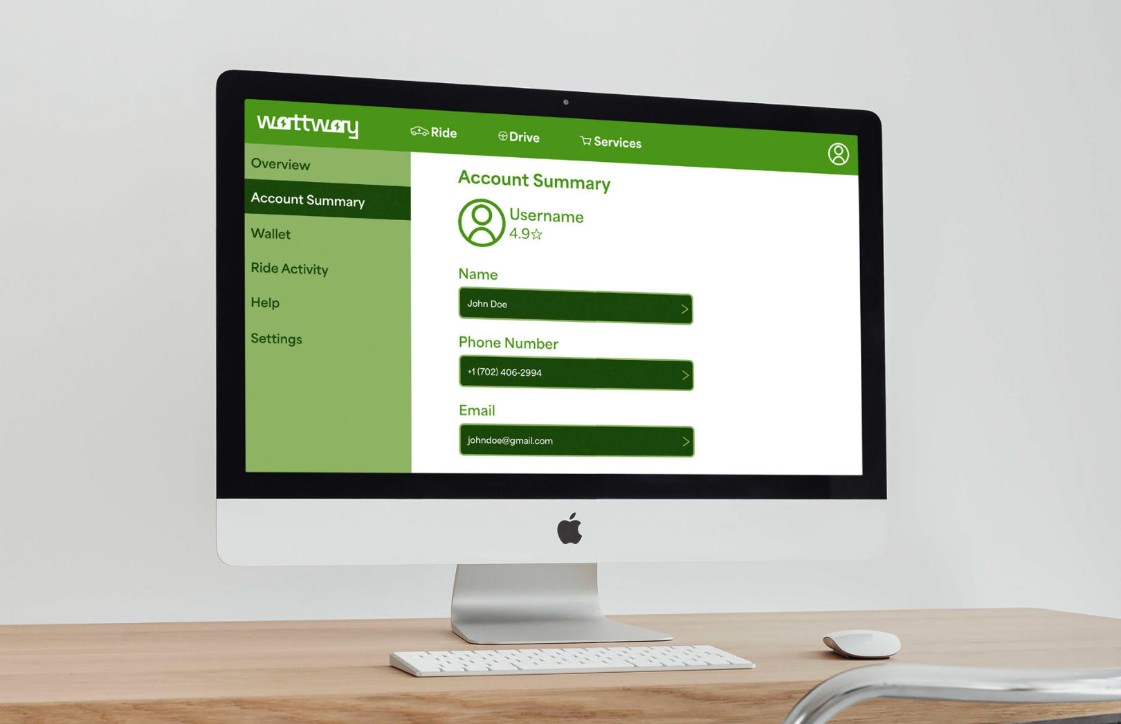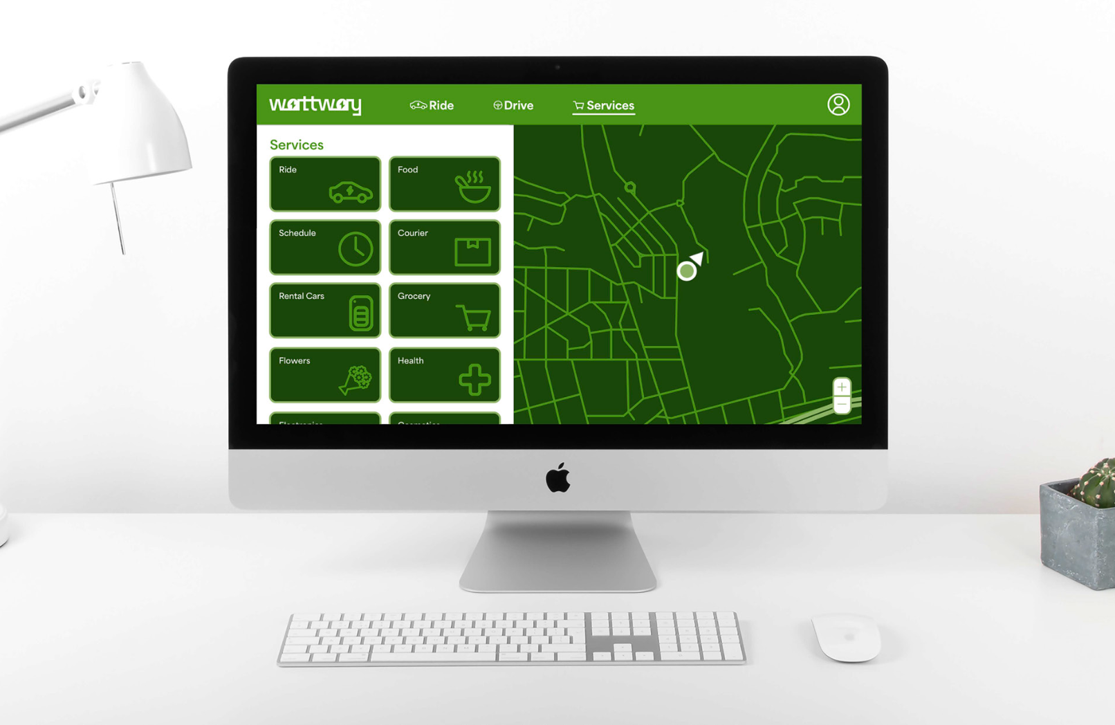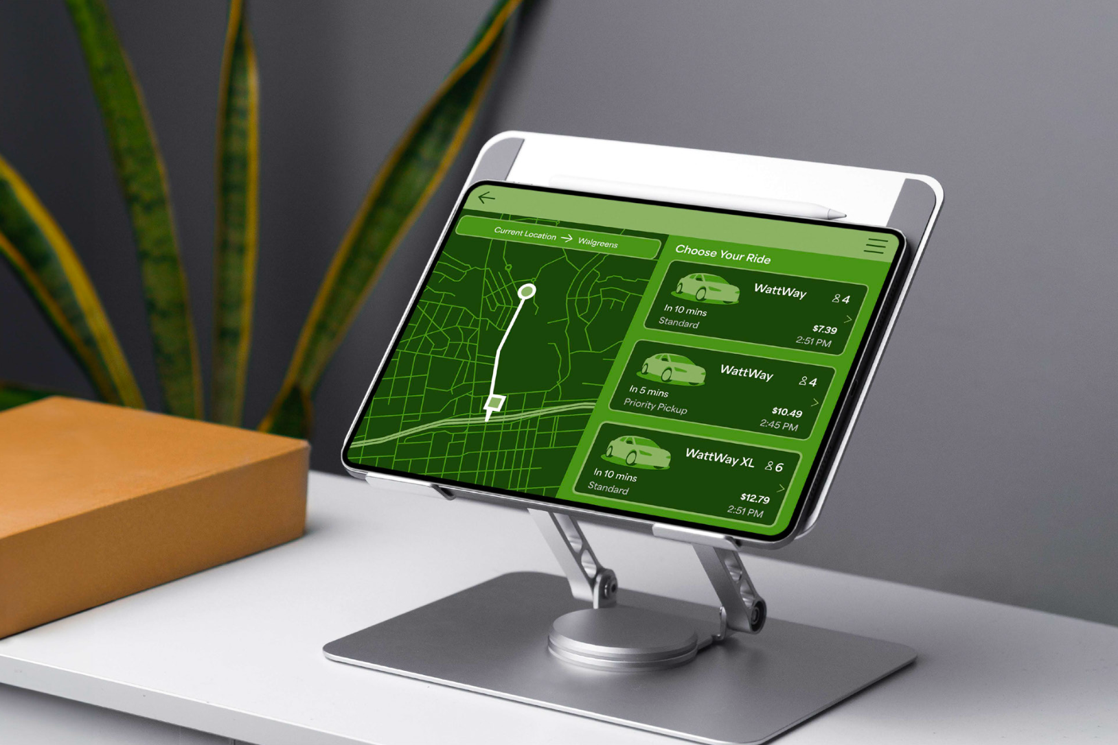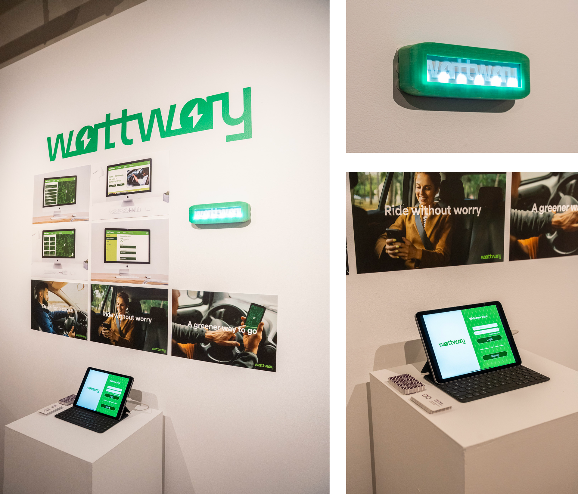 WattWay is a rideshare company dedicated to helping environmental issues by only using electric vehicles. This project included logo design, UX design for app and web, advertisements, a rideshare light, and an exhibit to showcase the brand.